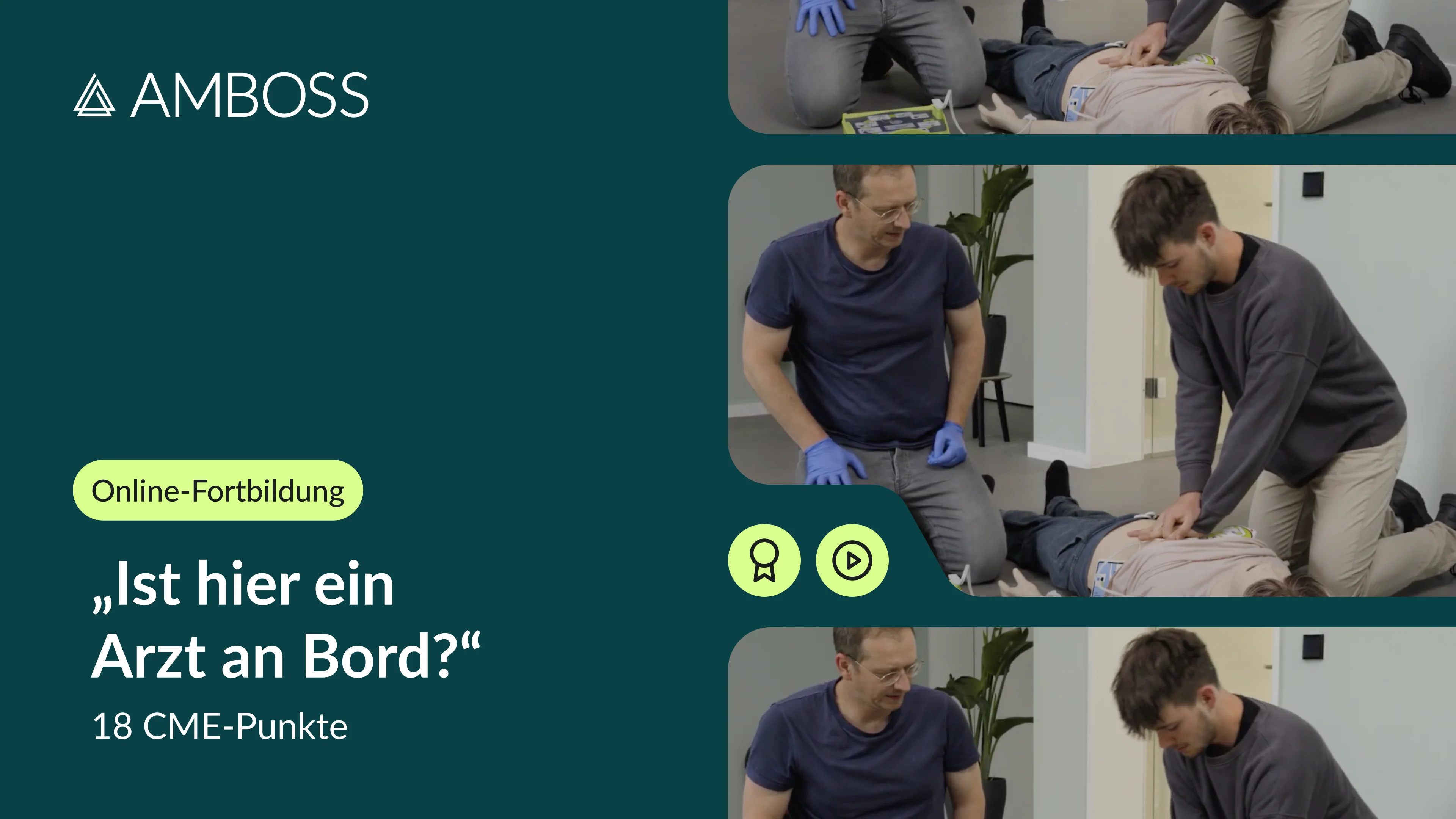 In unserer neuen Fortbildung „Ist hier ein Arzt an Bord?“ (mit 18 CME-Punkten zertifiziert) zeigen wir dir praxisnah und anhand echter Szenarien die effektive Erstversorgung in kritischen Notfallsituationen außerhalb der Klinik. In 5 Videolektionen gibt dir unser Experte Jakob Olbrich strukturierte Handlungsanweisungen an die Hand.