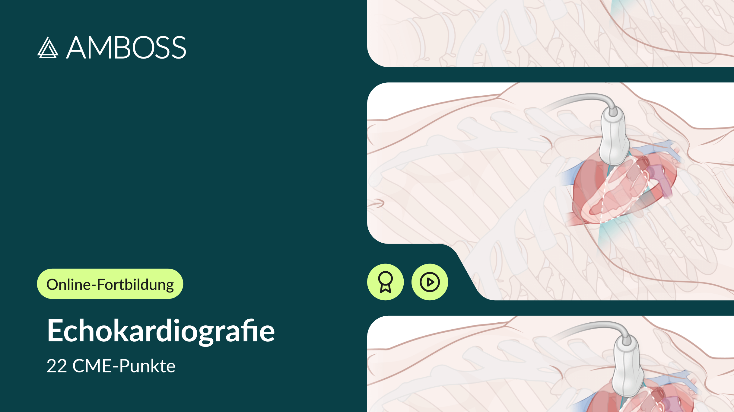 In der Online-Fortbildung „Echokardiografie“ (22 CME-Punkte) zeigt dir die interventionelle Kardiologin und Intensivmedizinerin Dr. med. Kathrin Klein, wie du systematisch an eine transthorakale Echokardiografie herangehst. In einem praktischen Video am Ultraschallgerät erfährst du, wie du die Schnittebenen einstellst und welche Tricks es gibt, falls es mal nicht direkt klappt. Außerdem werden dir relevante Pathologien anhand verschiedener Fallbeispiele nähergebracht, damit du am Ende der Fortbildung alle Grundlagen der Echokardiografie sicher beherrschst.