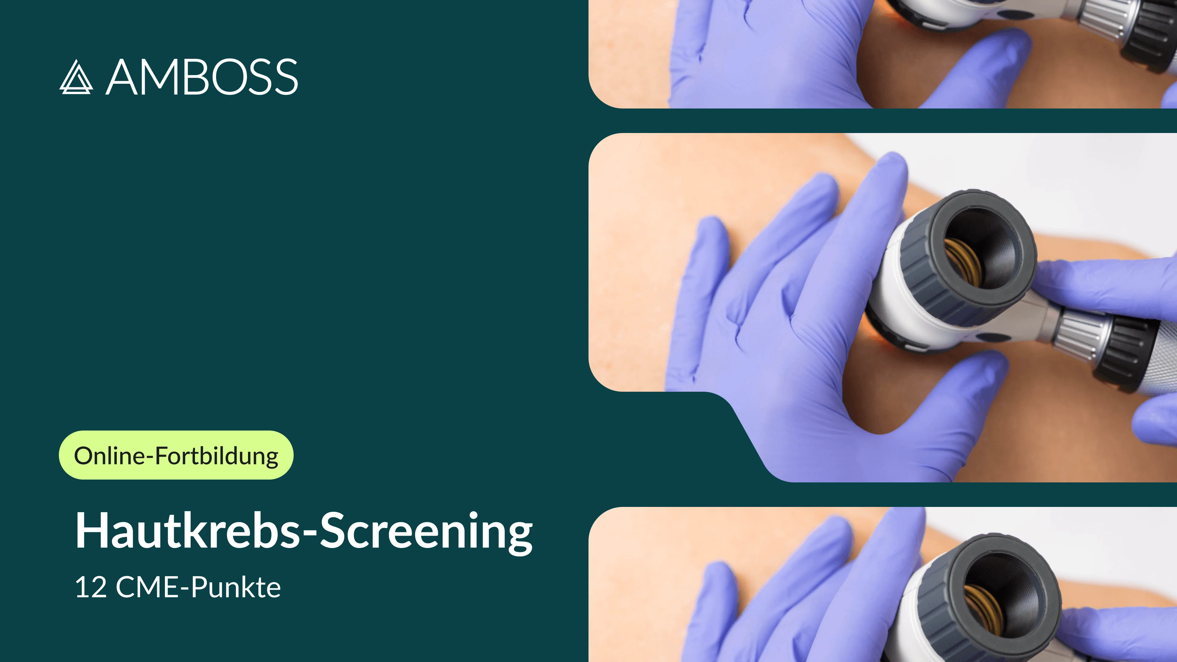 Das Selbststudium wird dir nicht auf AMBOSS direkt bereitgestellt, sondern durch die Fortbildungsakademie medixum des Deutschen Ärzteverlags. Du erreichst medixum über folgenden Link: Selbststudium: Fortbildung Hautkrebs-Screening