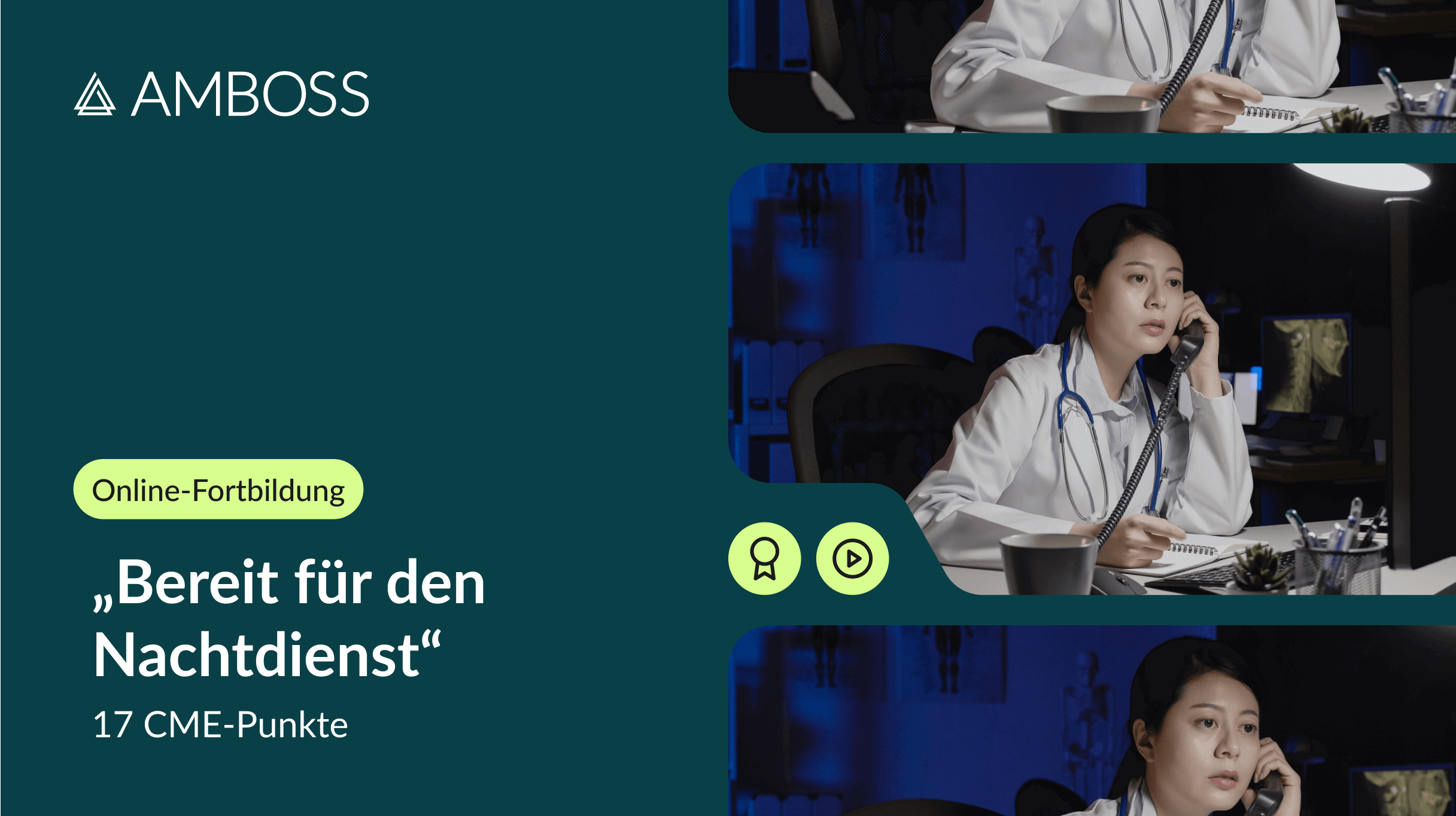 Diese Fortbildung wurde frei von finanziellen Interessenkonflikten und Sponsoring erstellt und ausschließlich durch die AMBOSS SE ermöglicht. Das Konzeptionsteam der AMBOSS-Online-Fortbildung „Bereit für den Nachtdienst” besteht aus:
