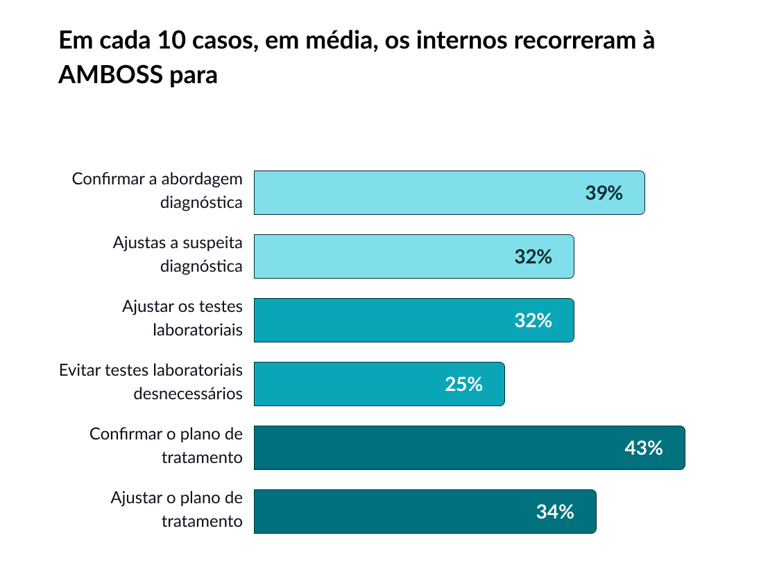 Em média, ao usar a AMBOSS, os internos encontram informações em 90 segundos. Em contrapartida, quando usam outros recursos gastam 82% mais tempo a procurar informações.